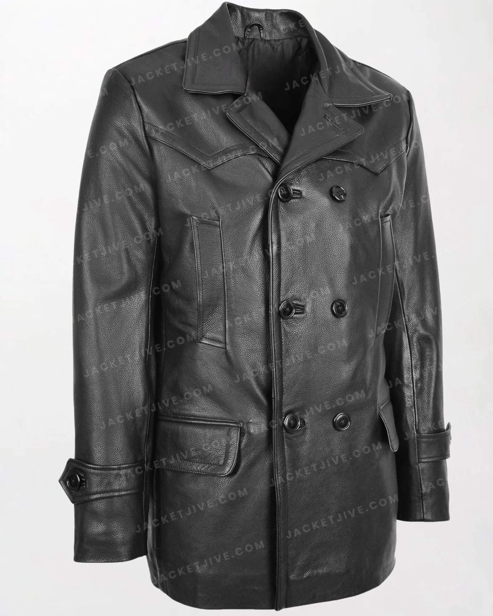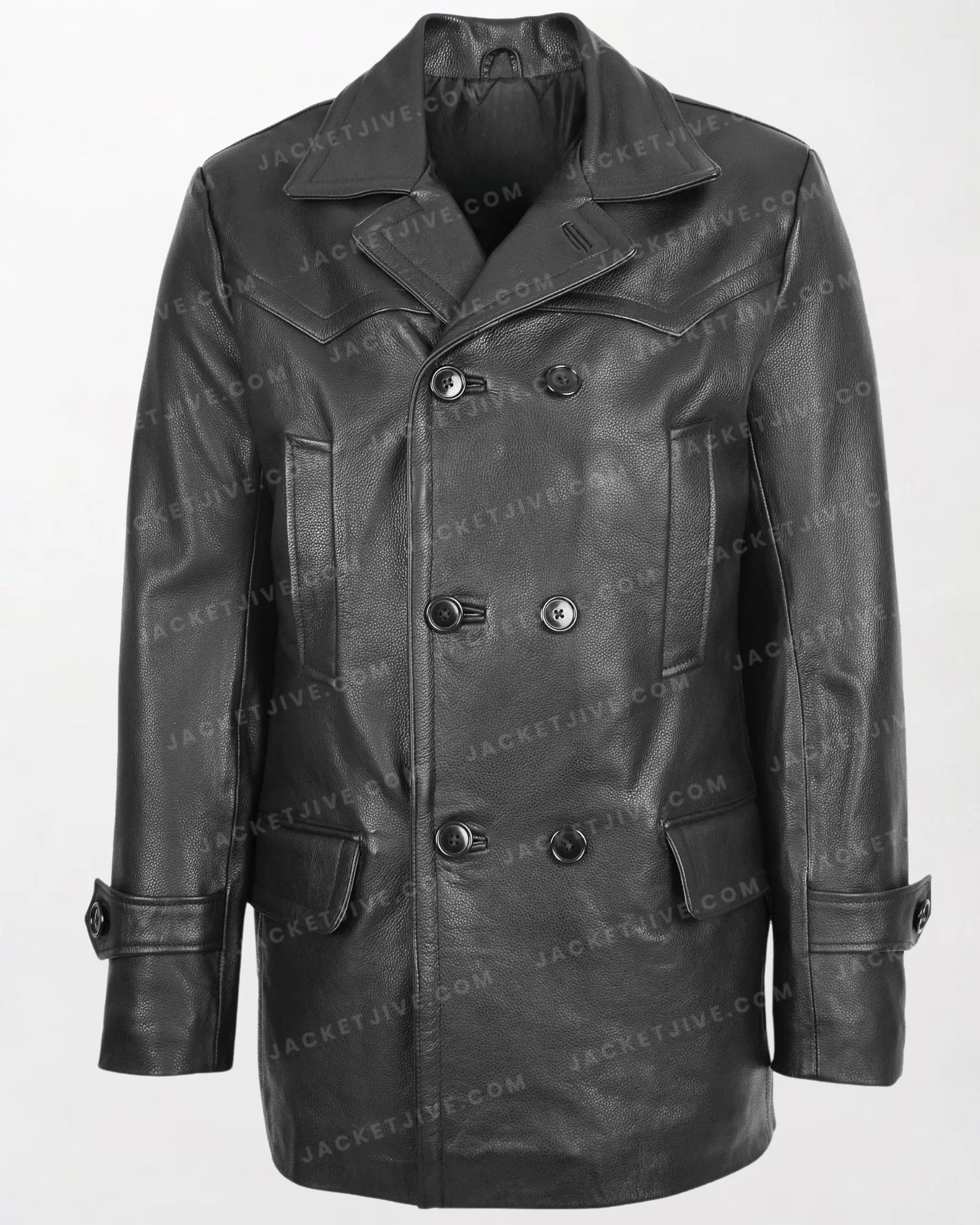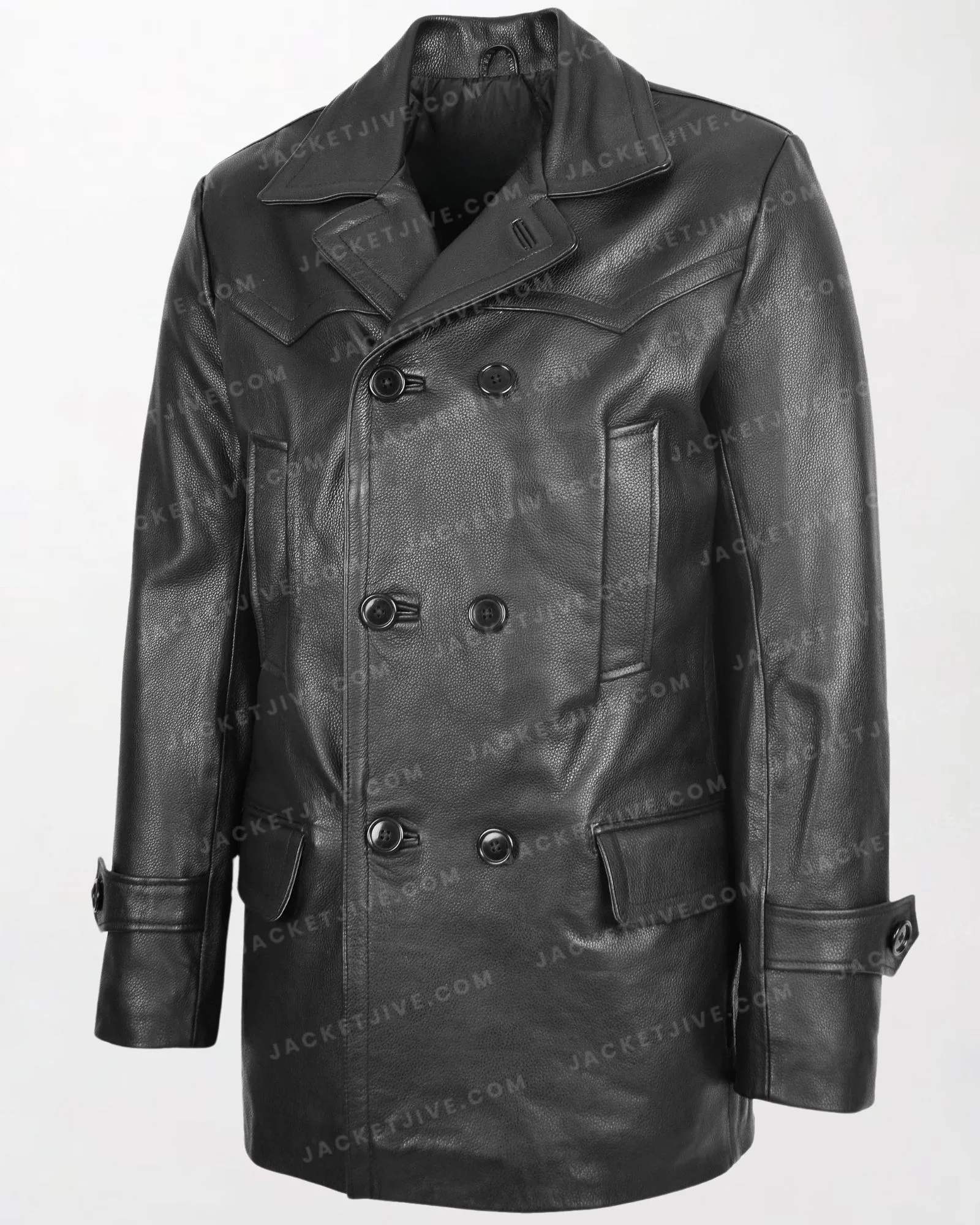 Men's Salcombe Black Leather Peacoat with Slim Fit and Double Breasted Design