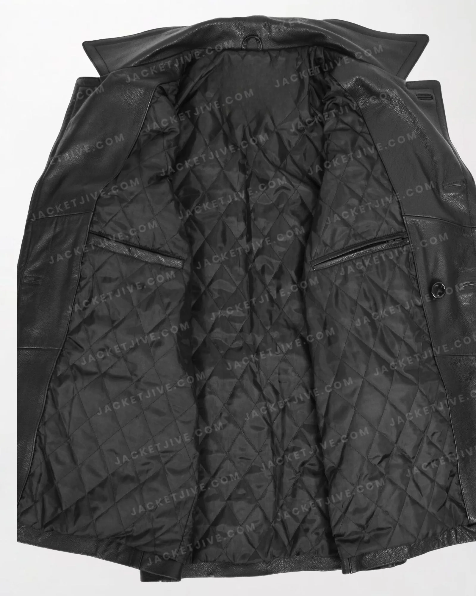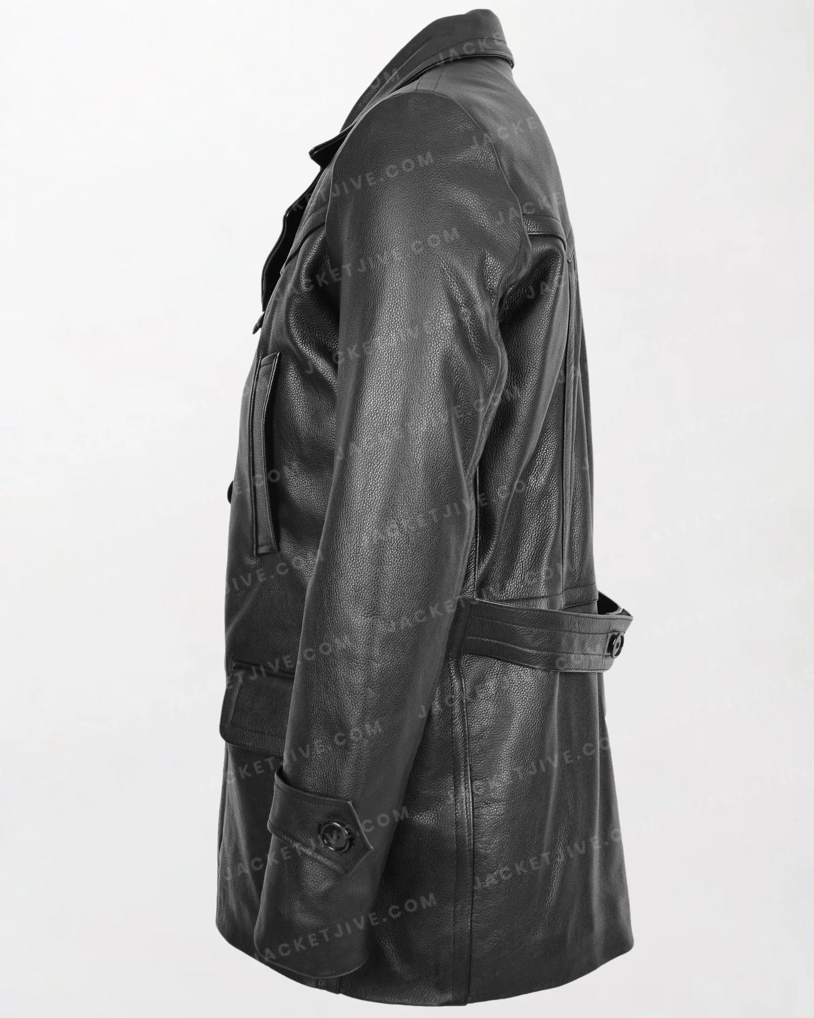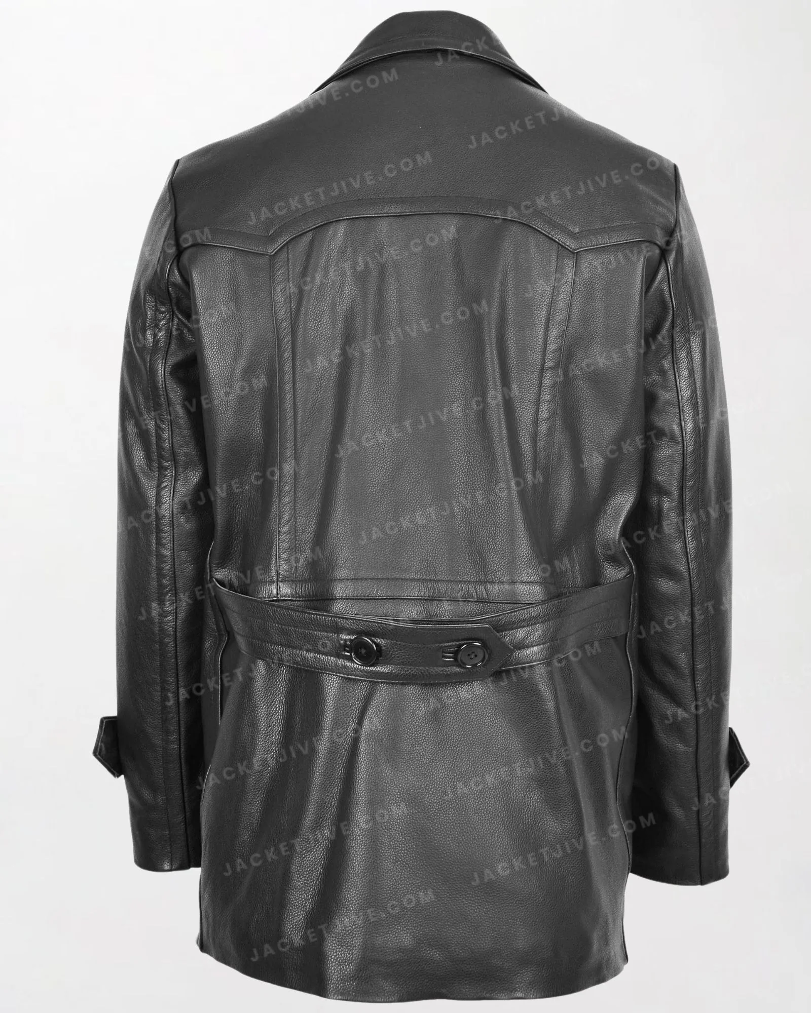 Men's Salcombe Black Leather Peacoat with Slim Fit and Double Breasted Design