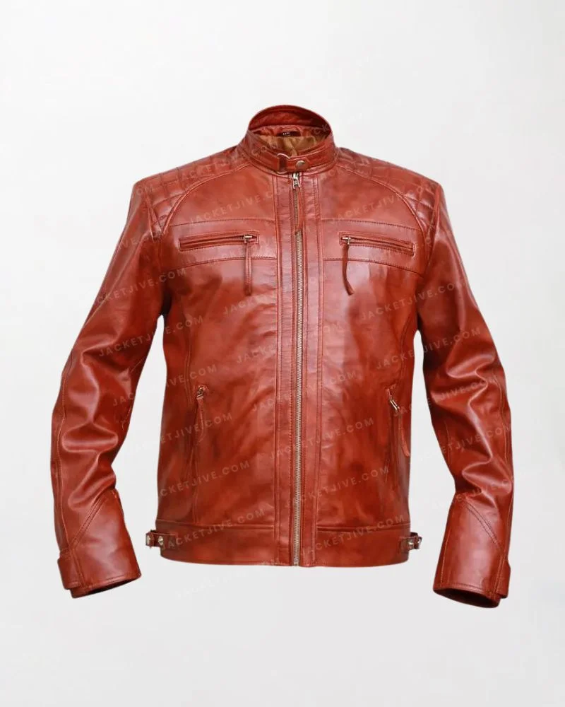 Classic Diamond Vintage Brown Biker Leather Jacket