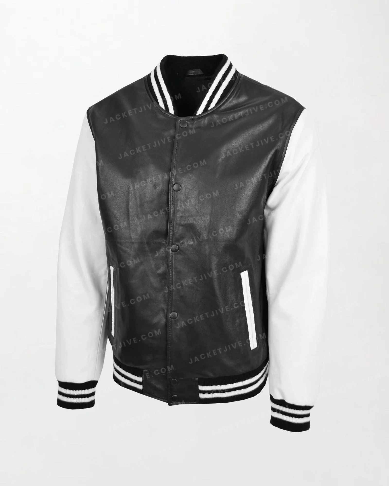 Men's Garry Black and White Leather College Boy Varsity Jacket Fitted Design