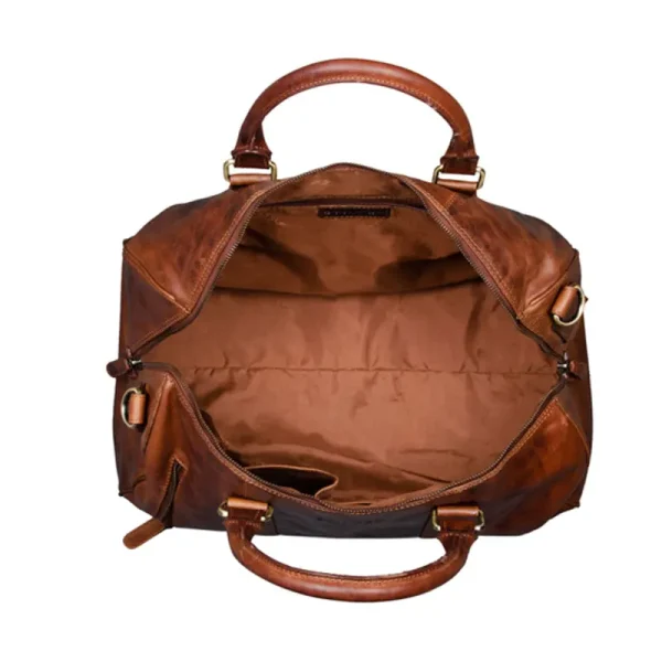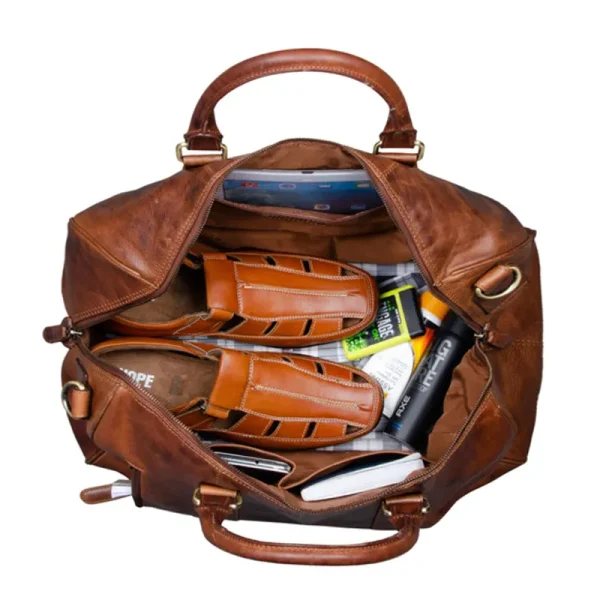 Heritage Leather Weekender Duffel Bag with spacious interior and sturdy handles.
