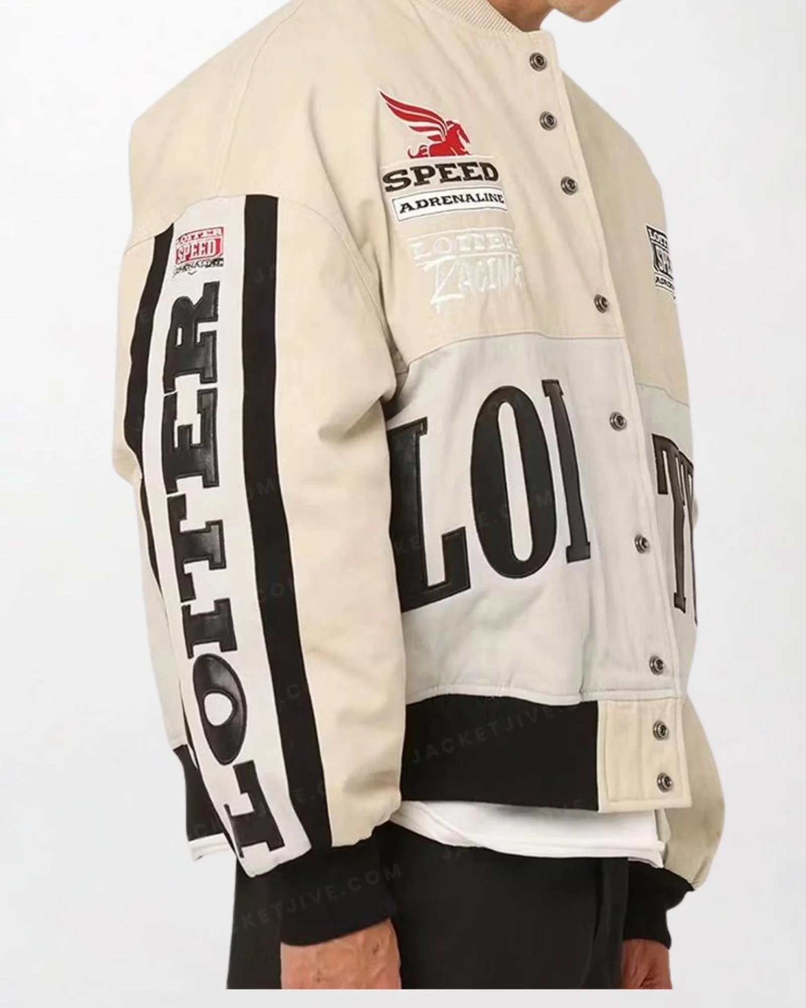 Loiter Racing Jacket in a vibrant graydesign, featuring racing stripes and a sleek, sporty silhouette.