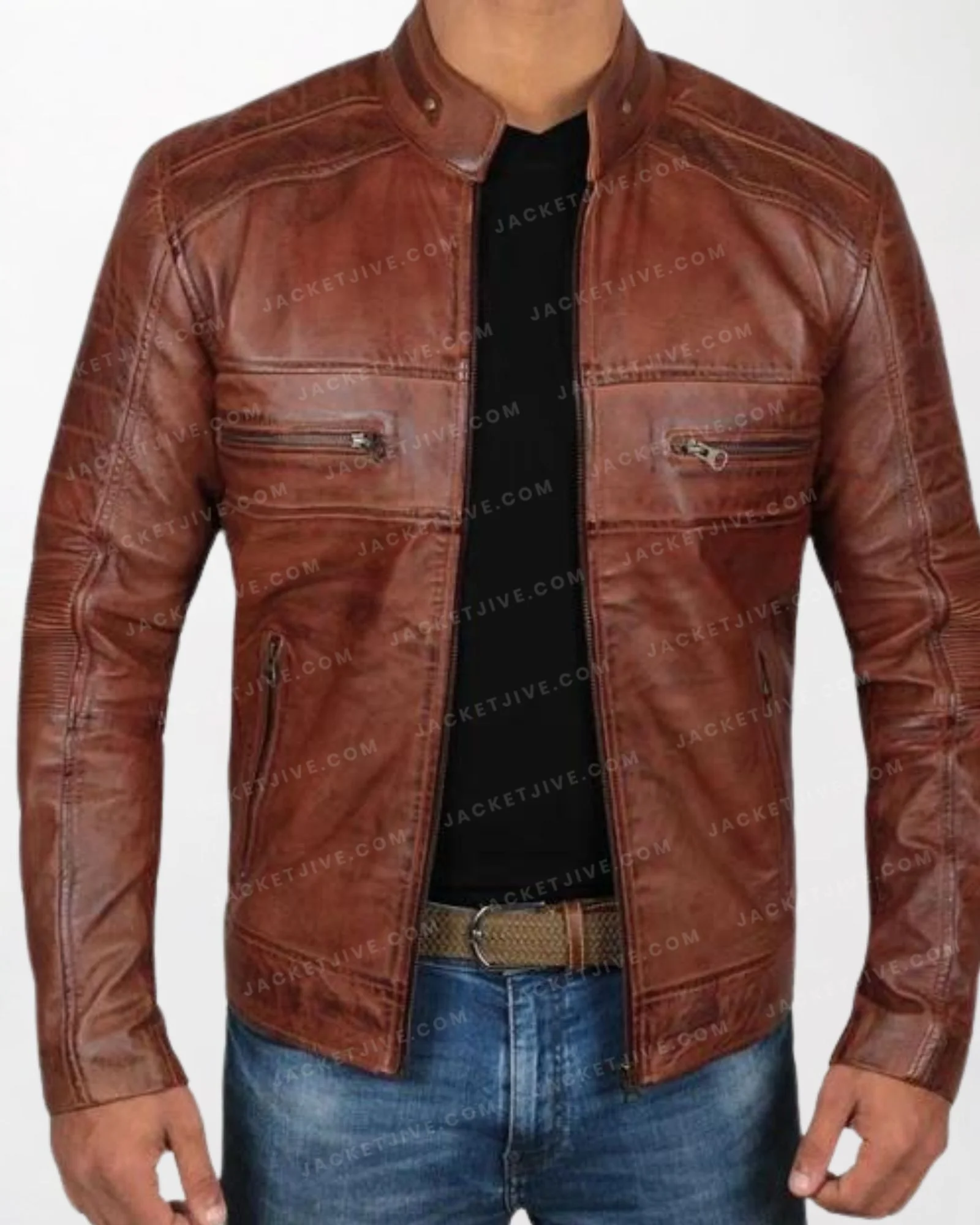• Product: Men Austin Waxed Leather Jacket in Rich Chocolate Brown