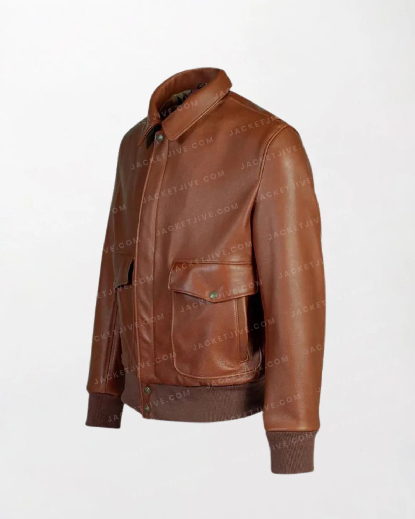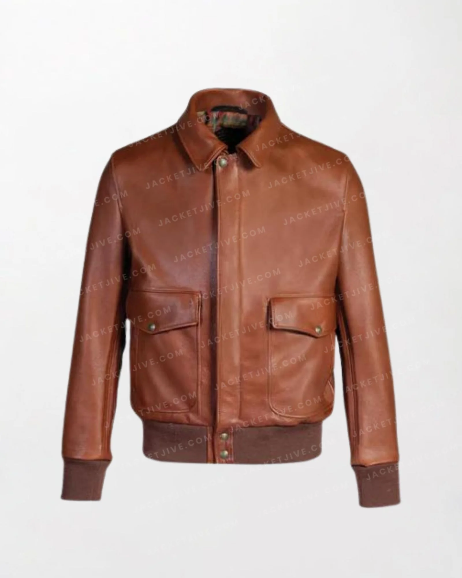 Men's Brown Leather RAF Bomber Jacket - Brown, Zipper Front, Button Cuffs