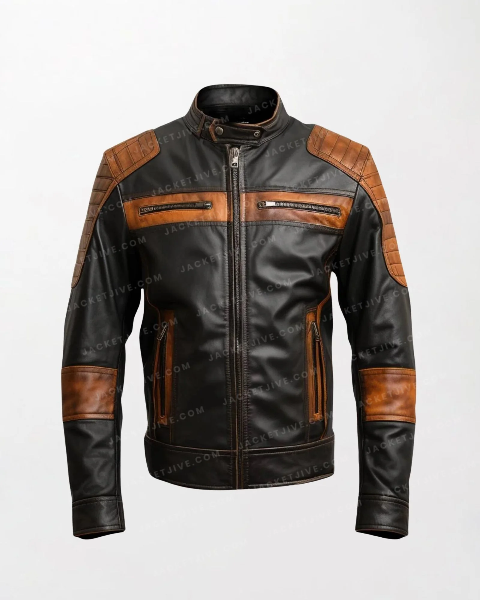 Men High-Gloss Orange Black Waxed Leather Jacket - Bold and Trendy
