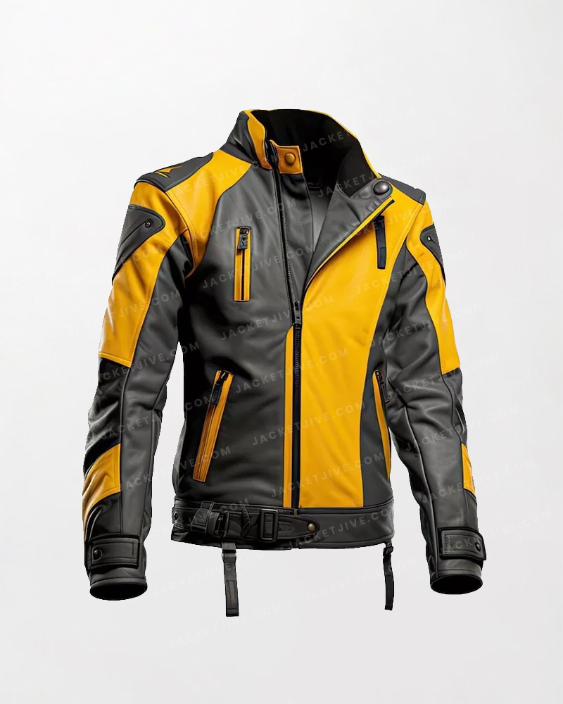 Men Yellow and black leather jacket Real Lambskin leather yellow biker