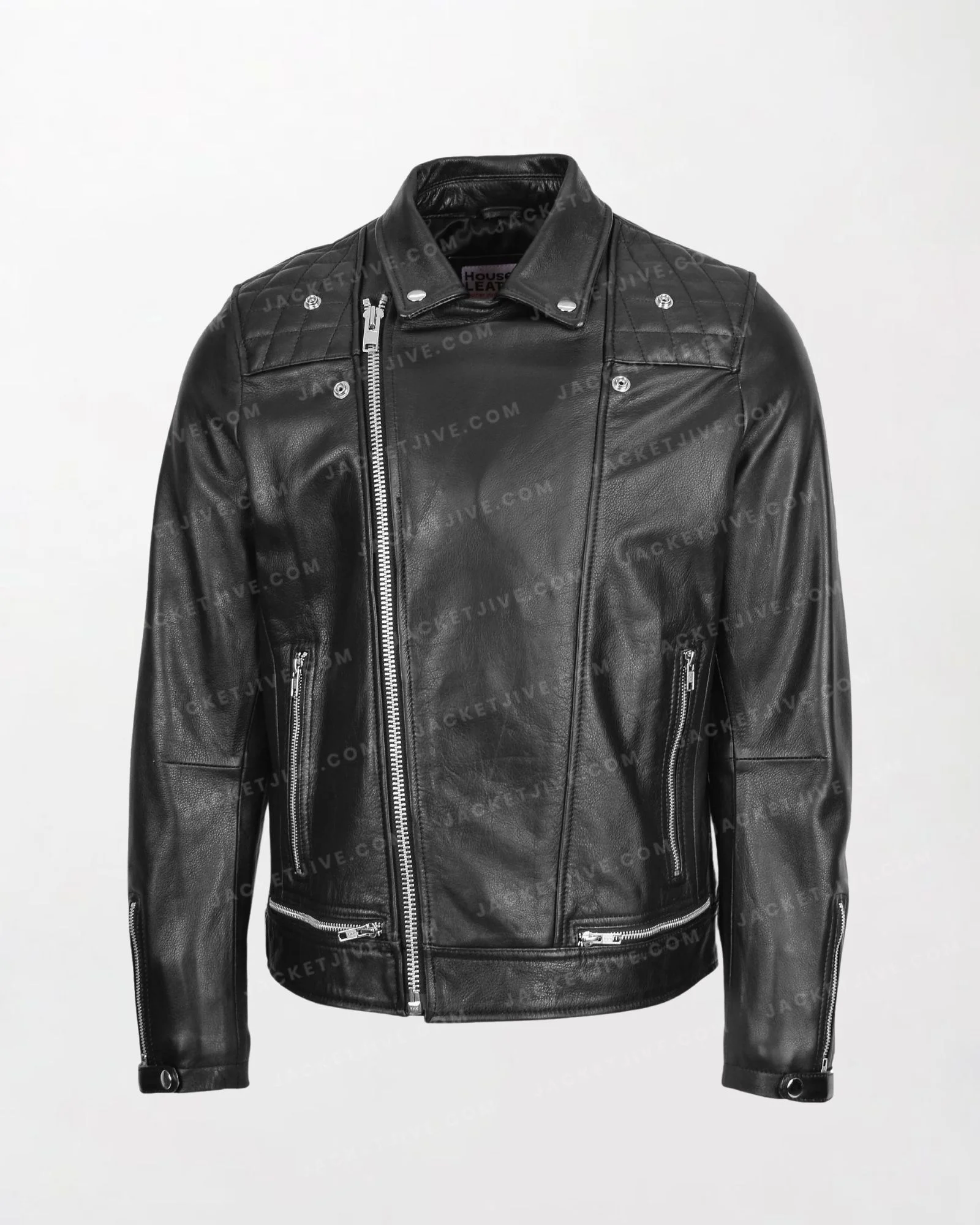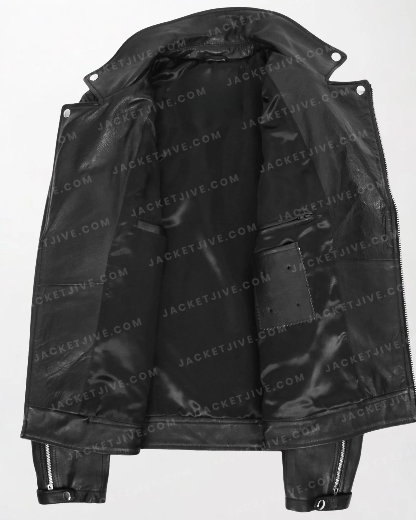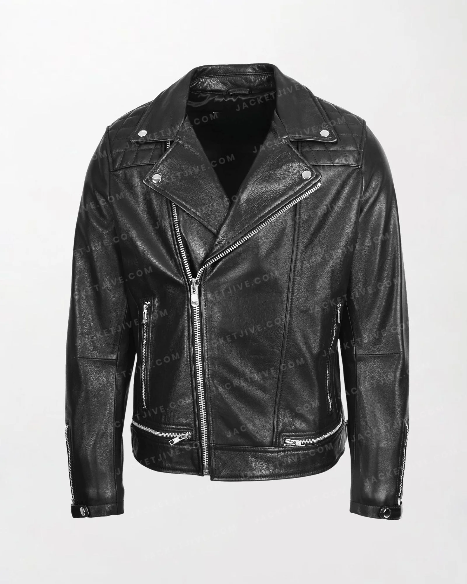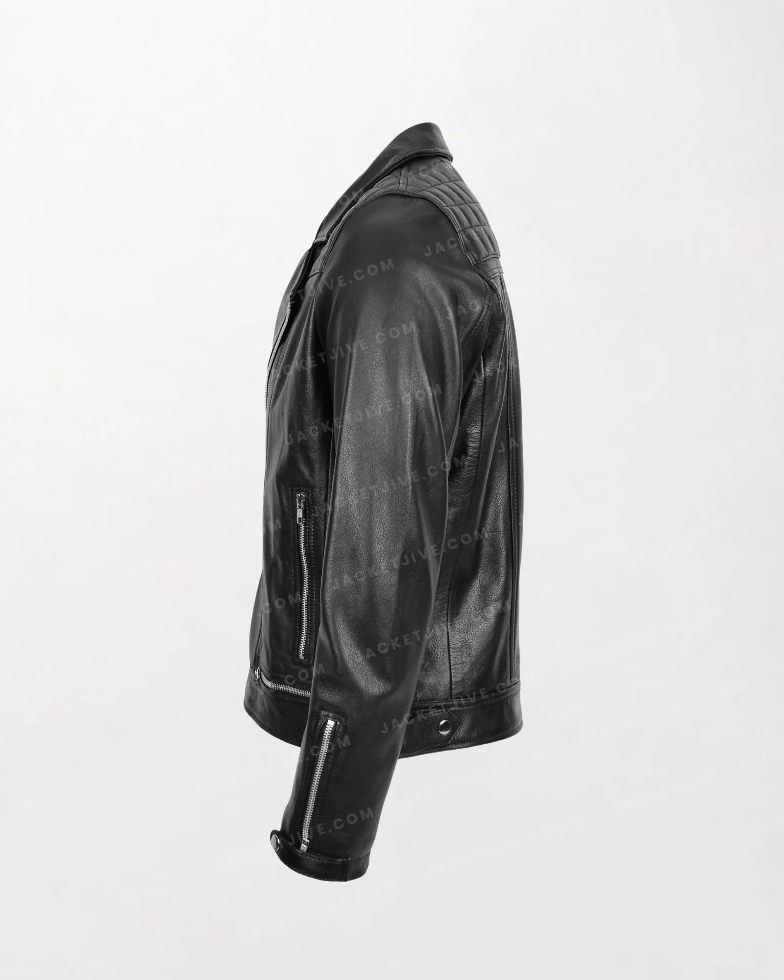 Men's Black Leather Biker Jacket in Brando Style with Zippered Front and Sleeves