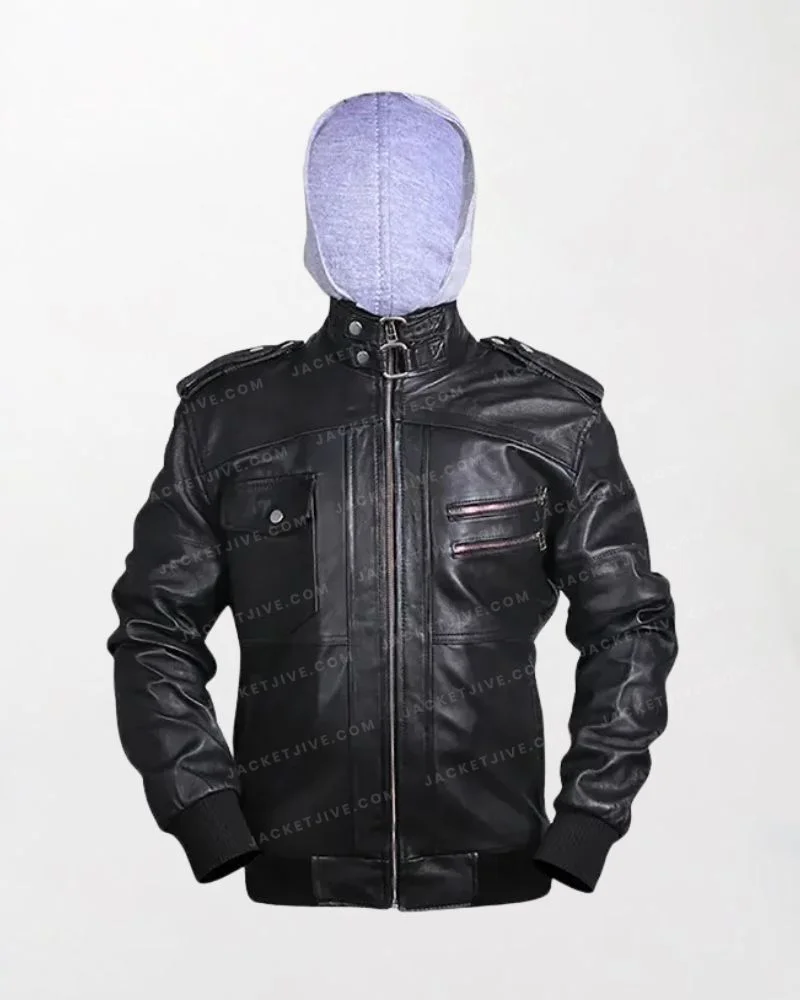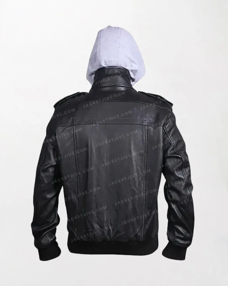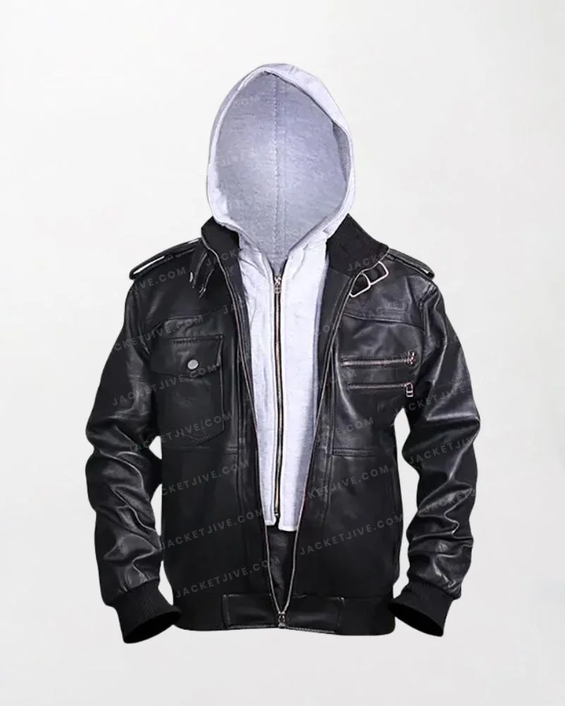 Men’s Distressed Leather Bomber Hooded Jacket