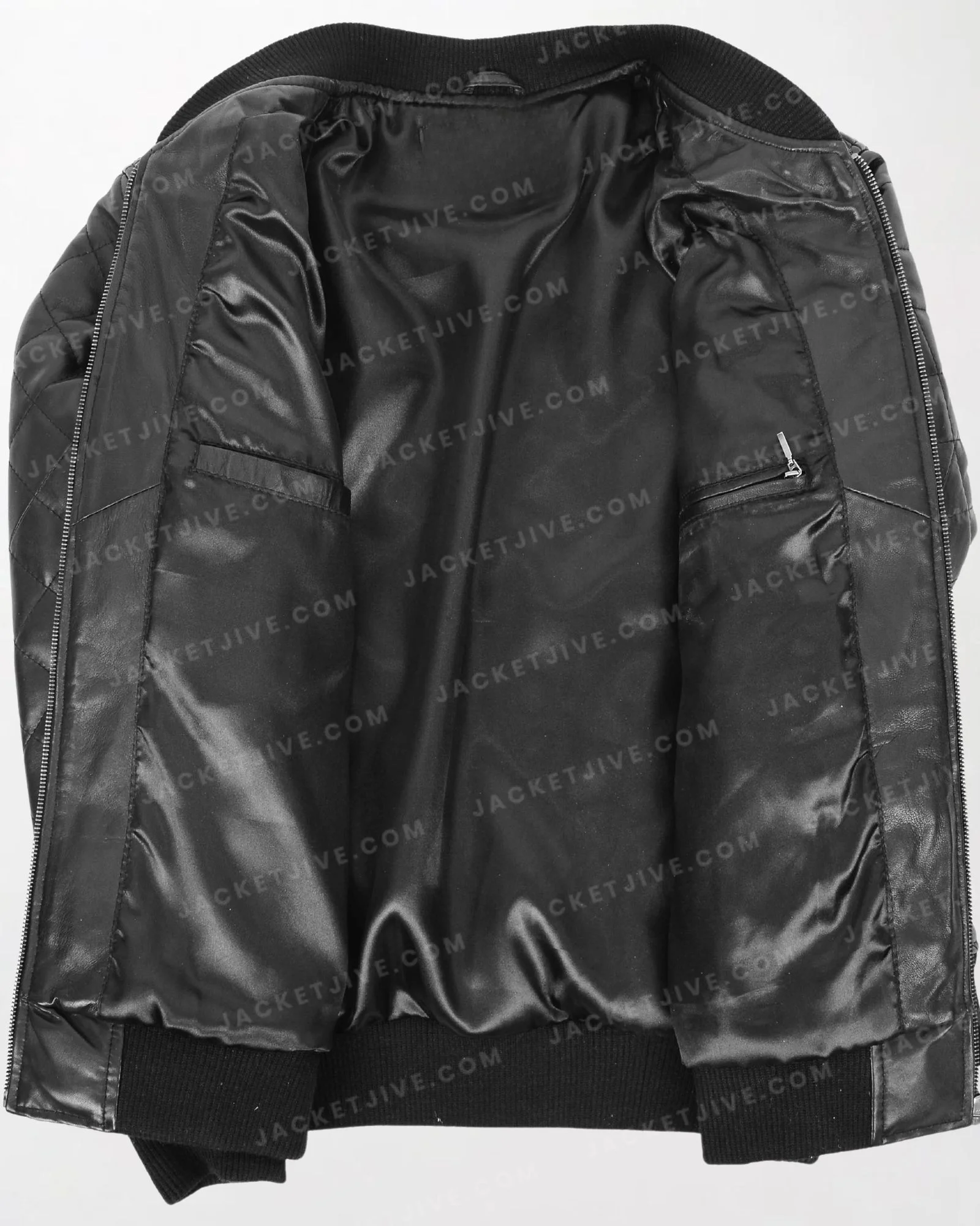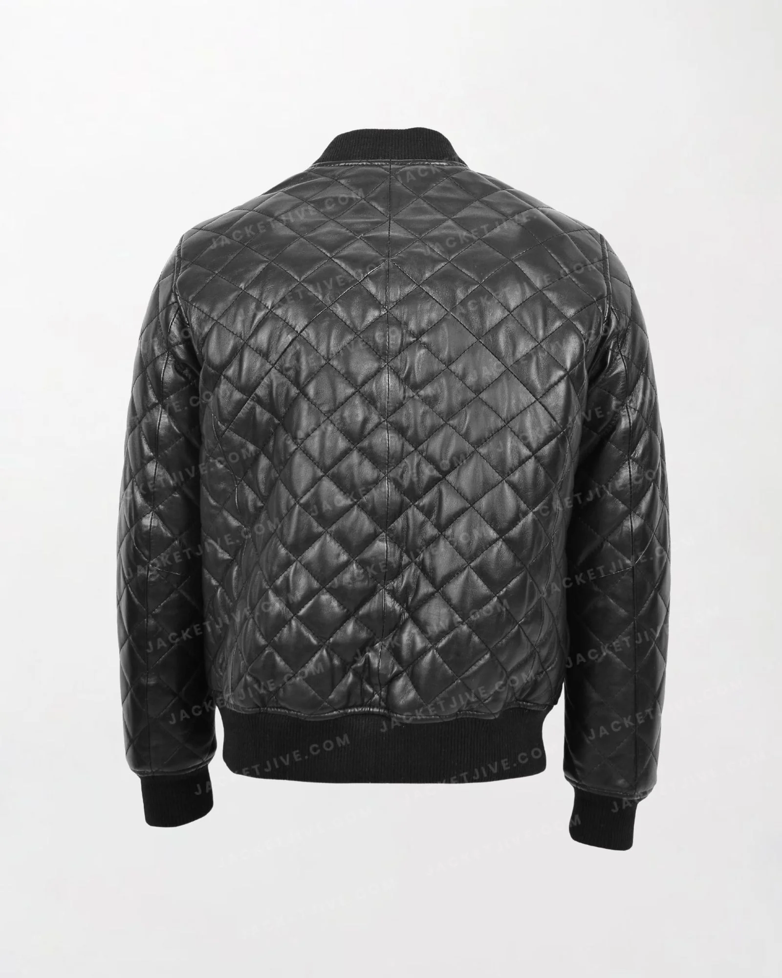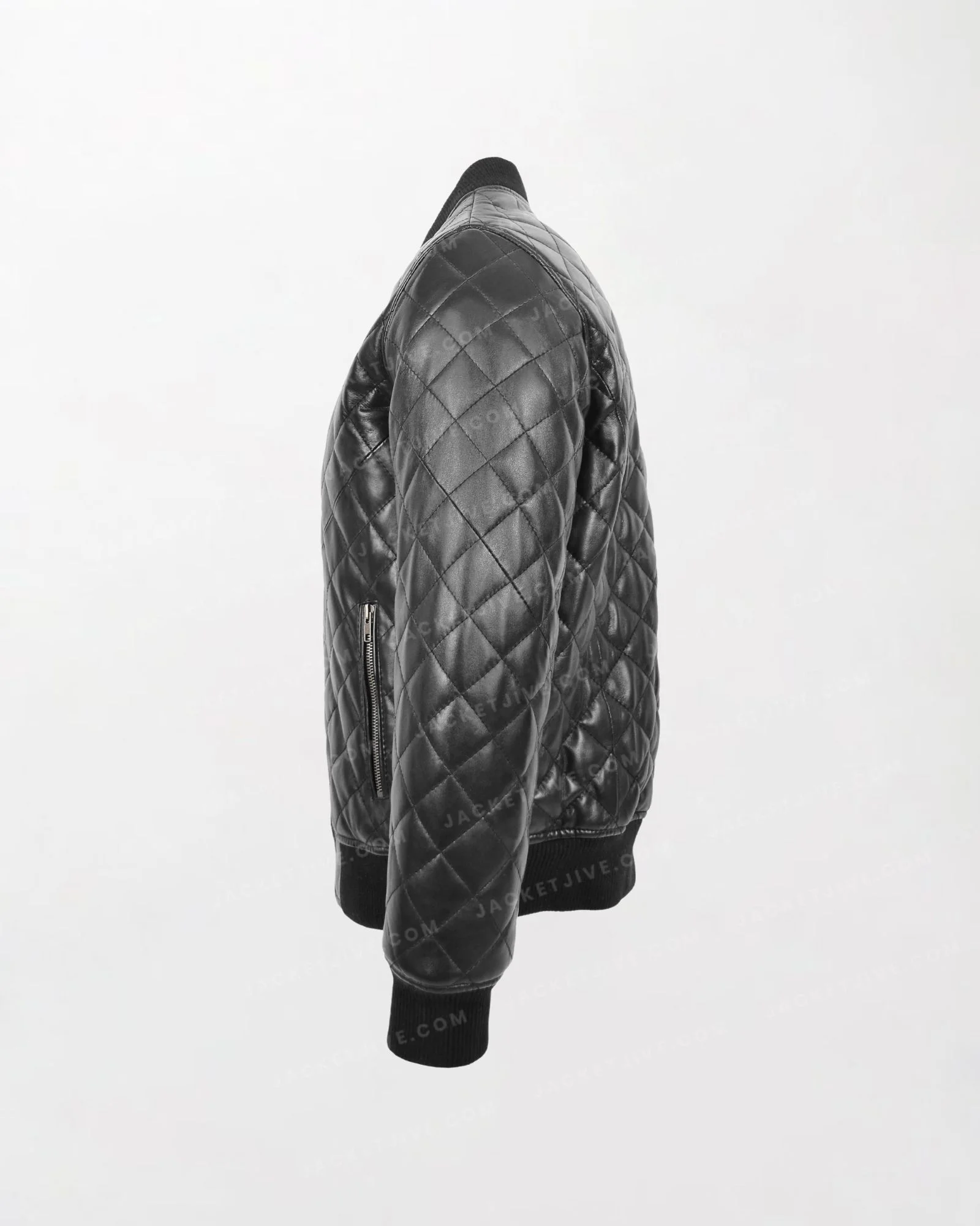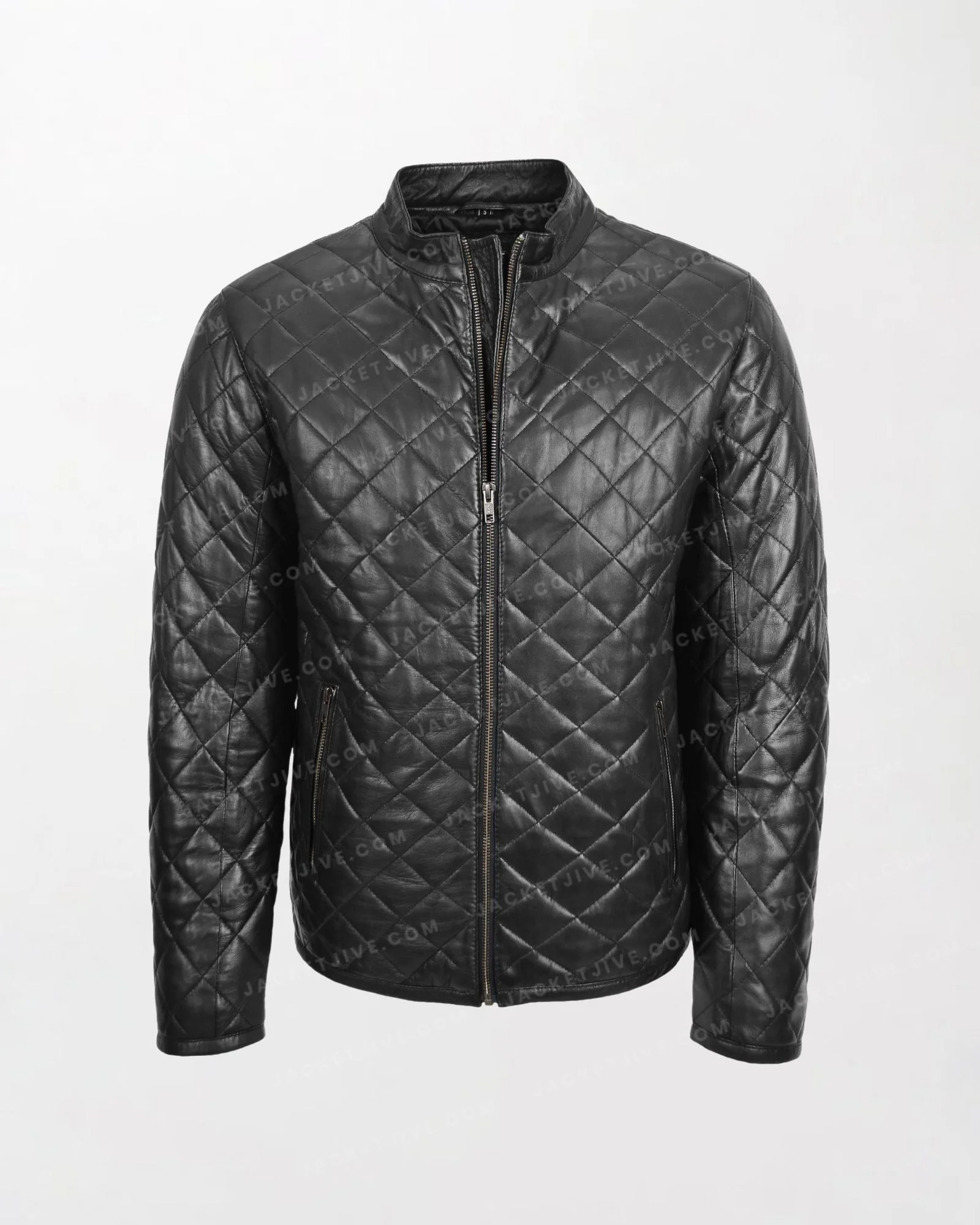 Men's Warren Black Leather Jacket with Quilted Design and Zippered Pockets