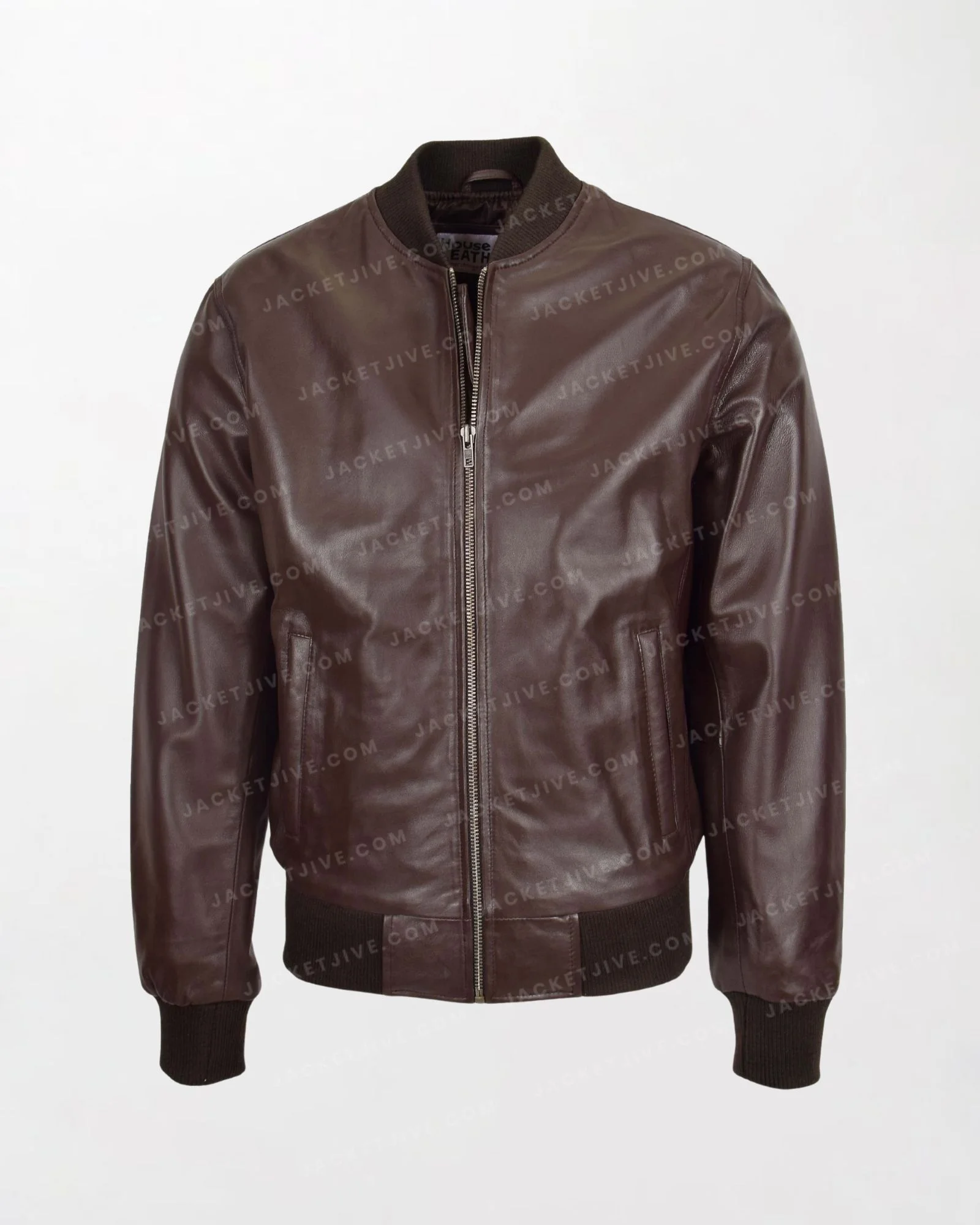 Ryan Brown Leather Bomber Jacket with Smooth Texture and Uniform Leather Details
