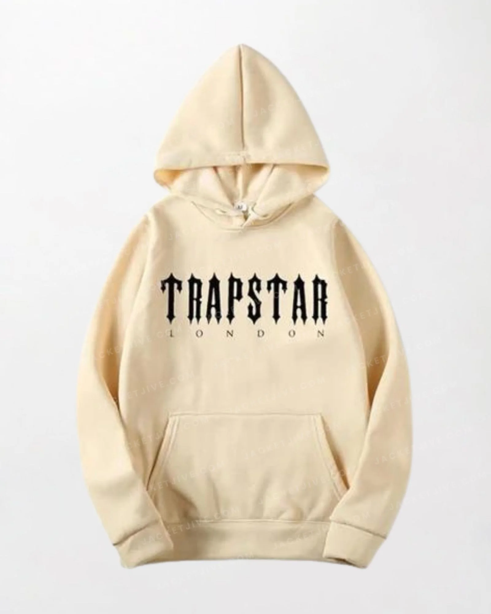 White Trapstar Hoodie - Traps Text in black, Drawstring Hood, Kangaroo Pocket, Ribbed Cuff and Hem