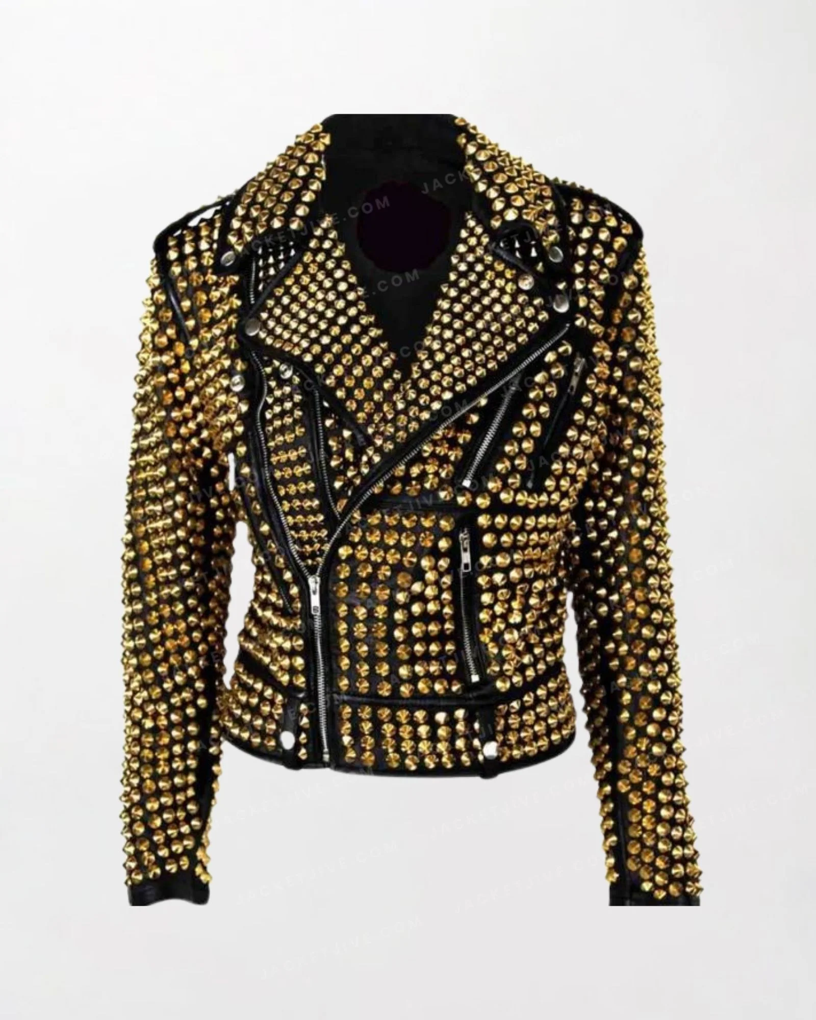 Women Golden Studded Cowhide Brando Jacket